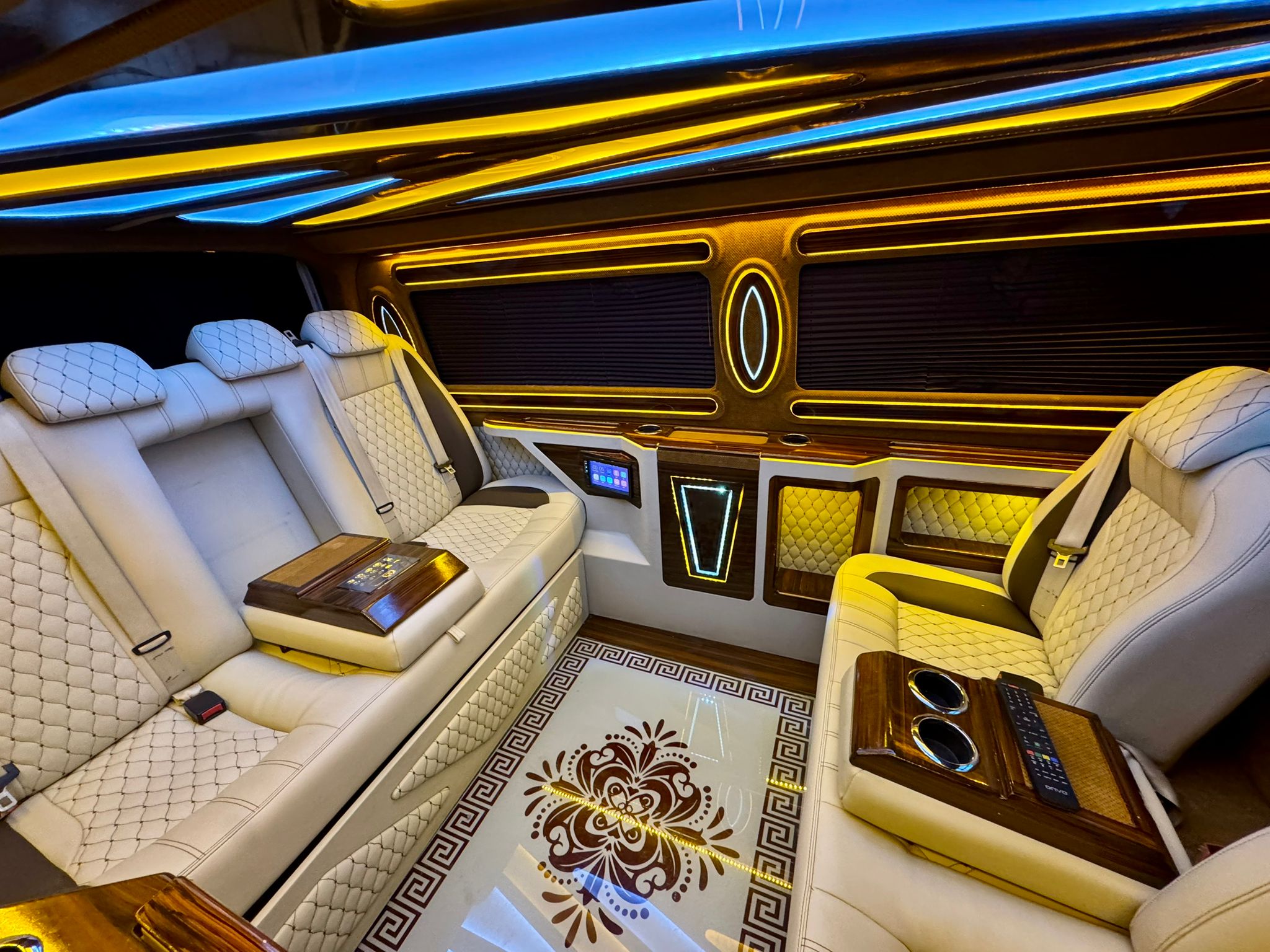 Eski VIP araçların sıfırdan yenilenmesi: taban döşemesi, izolasyon, tavan paneli, LED, perde ve trim kaplamaları.