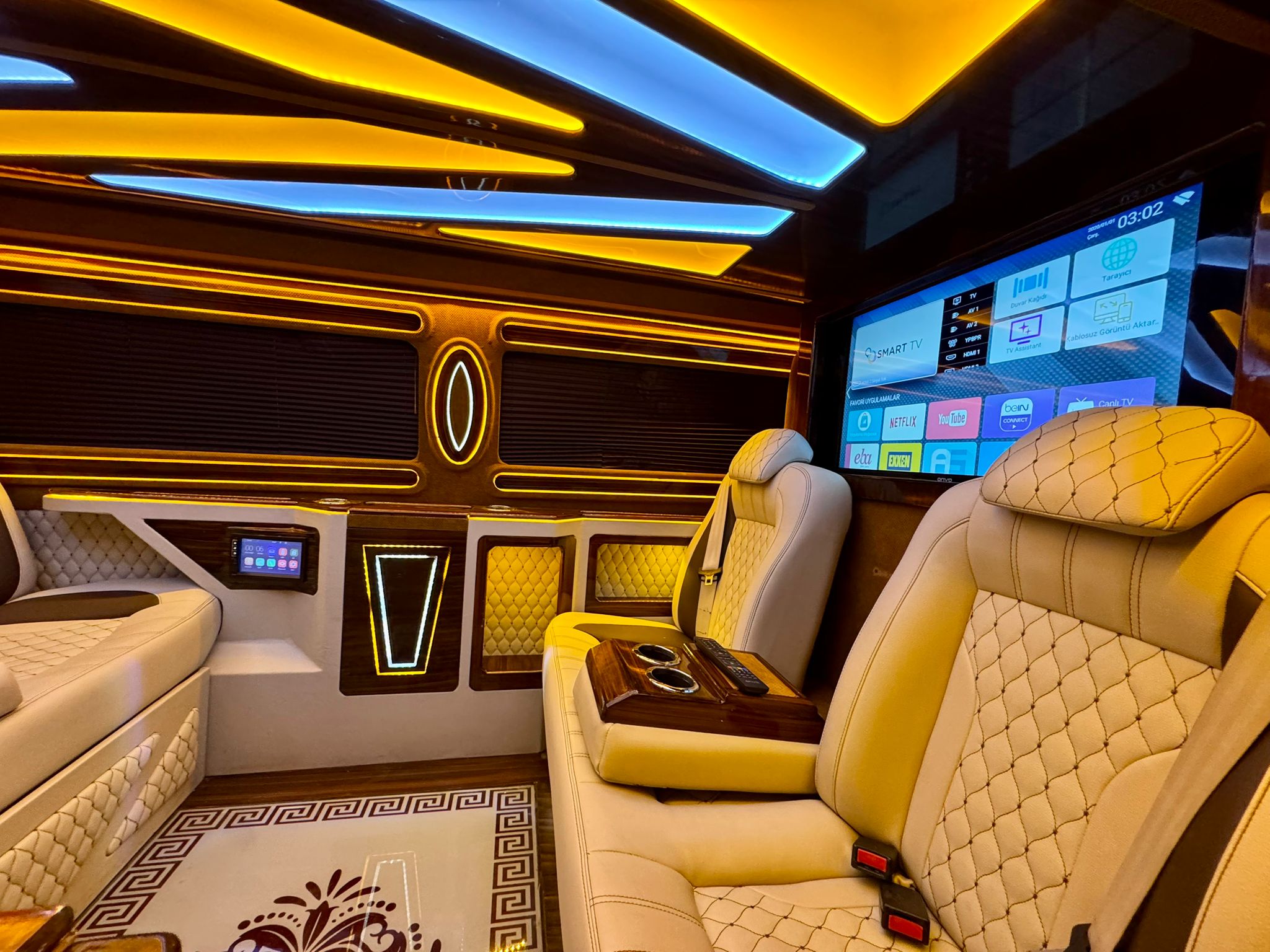 Konforu en üst düzeye çıkaran masaj fonksiyonlu VIP koltuk montajı ve özel kontrol paneli entegrasyonu.